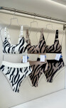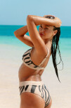 Top estampado con accesorio en breteles. Almohadillas desmontables. Vedetina tiro alto