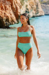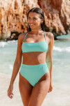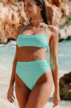 Top texturado recto con espalda cruzada y almohadillas desmontables. Vedetina tiro alto